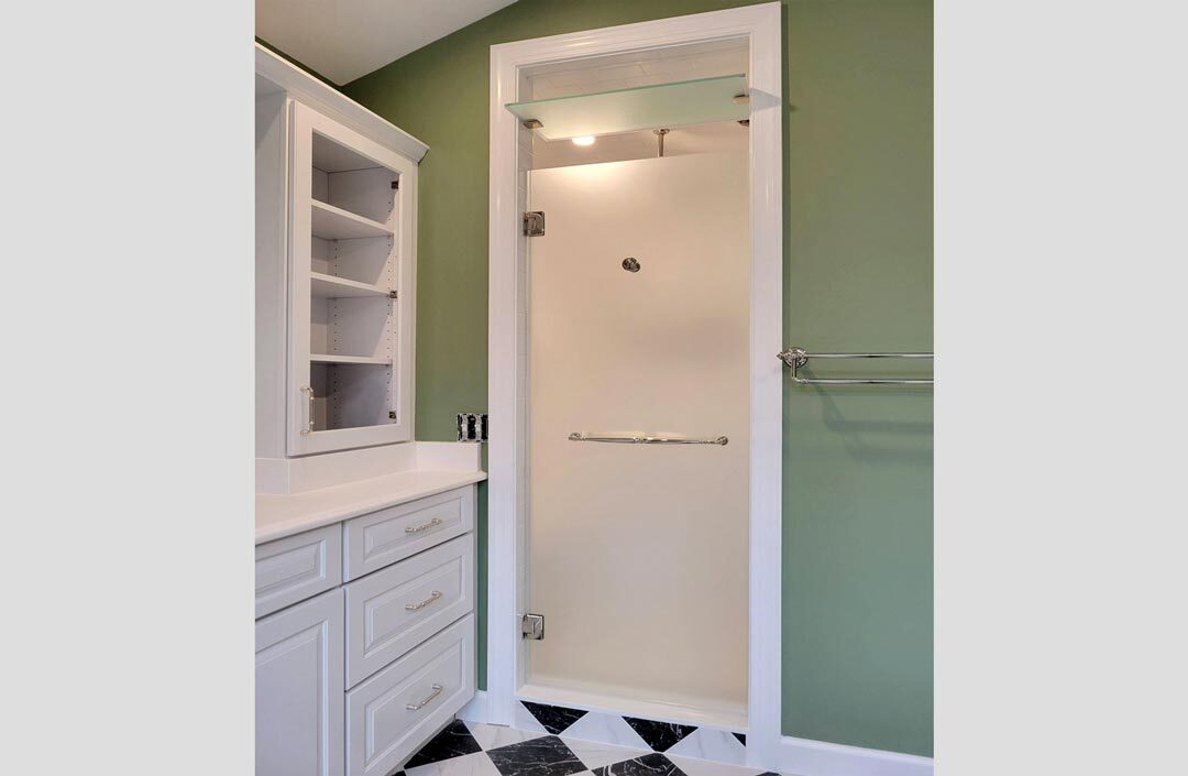 7. Rolling Shower Door Built from Rain Patterned Glass