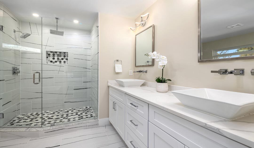 For many years, 74” has been a go-to height for glass shower designs. This provides solid water containment and a fairly standard appearance. However, many homeowners doing a bathroom remodel want results far above “standard,” as spa-inspired restrooms are becoming the norm. Some luxurious glass showers you see online may be cost-prohibitive, impractical for the size of your bathroom, or not even possible within US building codes. There is an easy way to make your glass shower more impressive, though. Choose a height of around 78” – could be a bit taller or shorter depending on your ceiling height – to give the enclosure a more high-end and visually appealing vibe. This simple adjustment will also draw the eye upward, making the ceilings seem higher and ensuring that your new shower glass is a focal point.