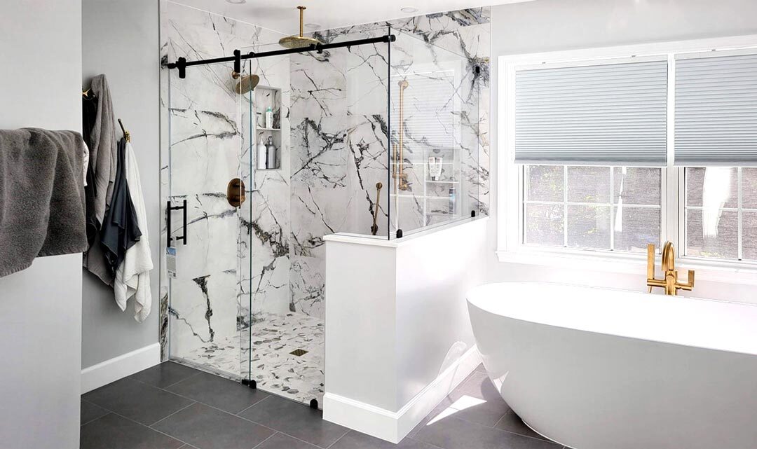 Regardless of which type of clear glass is chosen, is offers a neutral and versatile look, which means that the hardware finish will have a big impact on the style of a clear glass enclosure. If you want the hardware to be as unobtrusive as possible and are seeking a cool, sleek vibe, chrome and brushed nickel will be appealing. On the other hand, if you want hardware that really doubles as an ornament and gives the clear glass a pop of luxury, something in gold family – like satin brass – will be best. Finally, the pairing of clear glass and matte black hardware has gained a lot of traction. This dark finish will really stand out against the clear glass and draw the eye to the hardware. It can also contrast pleasantly with the white and cream elements so frequently present in bathrooms.