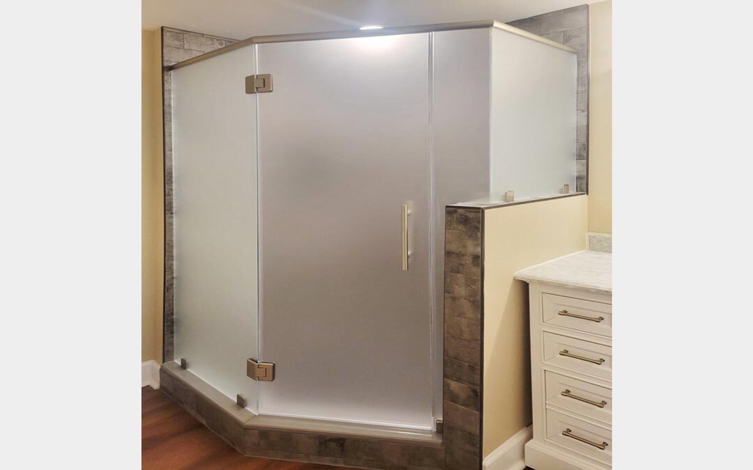 In spite of its manifold attractions, clear glass is not the right choice for every shower enclosure. Although it’s often a go-to for ensuites and other primary bathrooms, some prefer a more private shower area even in this situation. Likewise, many homes include high-traffic family bathrooms in which a child might want to brush his teeth while his brother is showering, for example. Obviously, obscure glass is the appropriate choice here and even in many guest bathrooms. When glass is treated with acid and then washed, it is left with a uniform “frostiness” across its surface. As such, acid-etched glass has a neutral and versatile appearance. Because this glass has a whitish hue, your hardware finish will stand out more strongly against the background on which it is installed, and matte black in particular will really pop.