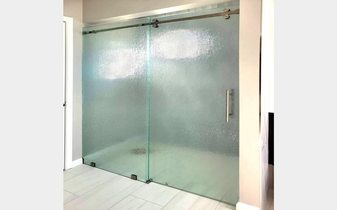 Like acid-etched glass, patterned glass will give the shower user some privacy. It also adds character and texture, so it can liven up a boring space. If you want your chosen pattern to be a focal point, you might want simple hardware, such as a tubular pull handle.