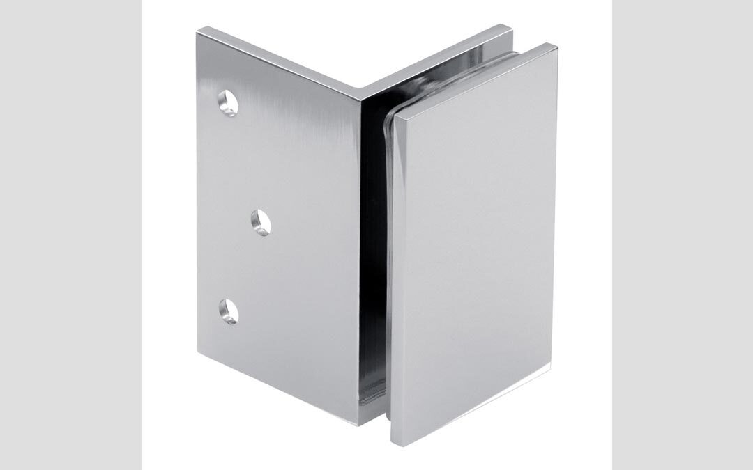 On framed and semi-frameless enclosures, components like aluminum framing and U-channels are instrumental in holding stationary pieces of glass and giving the enclosure rigidity and stability. Since these elements are not used on frameless designs, glass experts know that they must build these from thicker tempered glass – 3/8” or 1/2”. This thick glass enhances the structure, but the fixed panels still have to be secured. While silicone joints are included, the bulk of this work is done by small clamps. Clamps can be glass-to-glass or wall mount, and they connect panels at 90, 135, or 180 degrees.