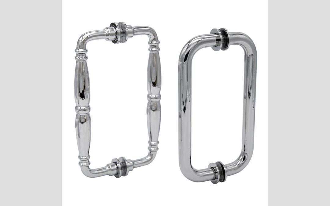 - Shower Door Pulls – Sold singly or as a back-to-back set, shower door pull handles are offered in many styles including mitered, tubular, and ladder-style.